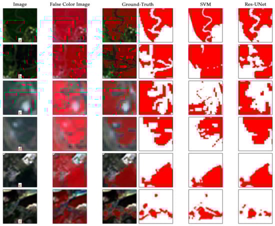 Figure A1 indicates the classification results of the SVM machine-learning algorithm, and Figure A2 indicates the classification results of the Res-UNet deep learning algorithm.