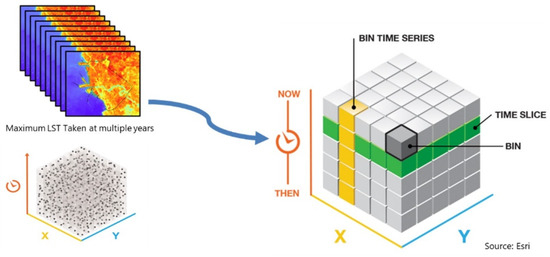 According to ESA [48], “Land Surface Temperature (LST) is the radiative skin temperature of the land derived from solar radiation. A simplified definition would be how hot the “surface” of the Earth would feel to the touch in a particular location. From a satellite’s point of view, the “surface” is whatever it sees when it looks through the atmosphere to the ground. It could be snow and ice, the grass on a lawn, the roof of a building, or the leaves in the canopy of a forest. Land surface temperature is not the same as the air temperature that is included in the daily weather report.”