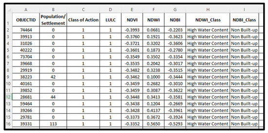 - Extract the values from the raster map at different years to create a feature layer. The spectral indices (NDVI, NDWI, & NDBI) are in values between −1 and 1 while land surface temperature is in degrees Celsius (°C). All the raster data are taken from Landsat 8 as explained in Section 2.2.4.