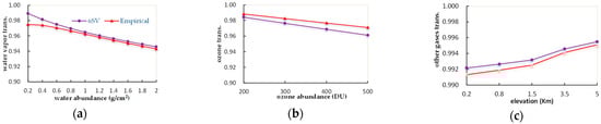 Similar to the MODIS AC process [35], is first corrected according to the gaseous transmission of the ozone (), water vapor (), and other gases (), as follows: