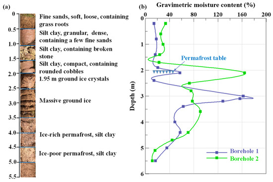 - Lin, Z.; Gao, Z.; Fan, X.; Niu, F.; Luo, J.; Yin, G.; Liu, M. Factors Controlling near Surface Ground-Ice Characteristics in a Region of Warm Permafrost, Beiluhe Basin, Qinghai-Tibet Plateau. Geoderma 2020, 376, 114540. [Google Scholar] [CrossRef]