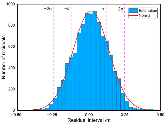 Statistics residual distribution histograms of SSHs estimated from the multi-GNSS PE combination method.