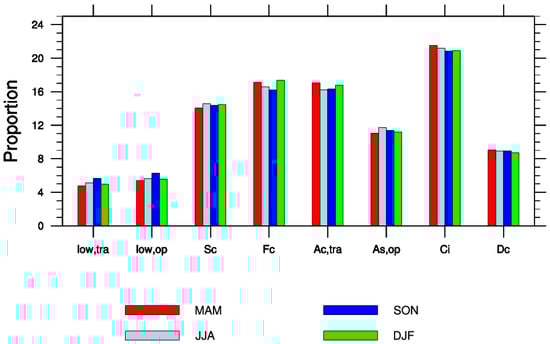 Percentage of cloud type per season (unit: %).