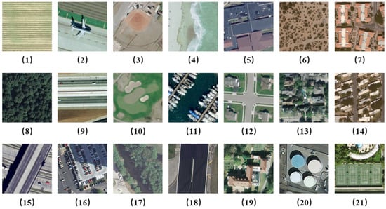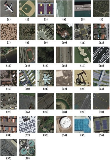 - Xia, G.S.; Hu, J.; Hu, F.; Shi, B.; Bai, X.; Zhong, Y.; Zhang, L.; Lu, X. AID: A Benchmark Data Set for Performance Evaluation of Aerial Scene Classification. IEEE Trans. Geosci. Remote Sens. 2017, 55, 3965–3981. [Google Scholar] [CrossRef]