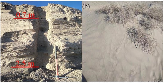 17]. From then on, Suoyang City became empty; the surrounding farmland was abandoned and suffered from strong wind erosion. Therefore, we can infer that the desertification process of the Suoyang City oasis probably started in the mid-Yuan Dynasty (AD 1291).