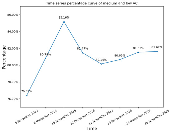 Time series change curve of the pixel number percentage with medium and low VC values.