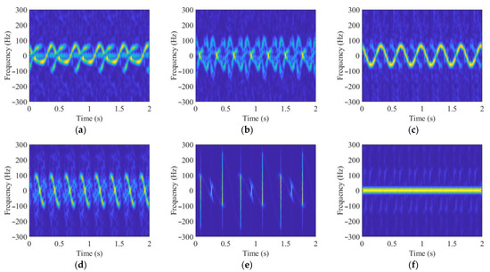 As an effective time–frequency transform method, short-time Fourier transform (STFT) is usually applied to the radar echo to obtain the time–frequency spectrogram. The main idea is that a window function is used to extract the signal in a small time interval, and then a fast Fourier transform (FFT) is used to analyze the signal frequency in each time interval. By applying STFT to the radar echo , the time–frequency distribution can be represented as: