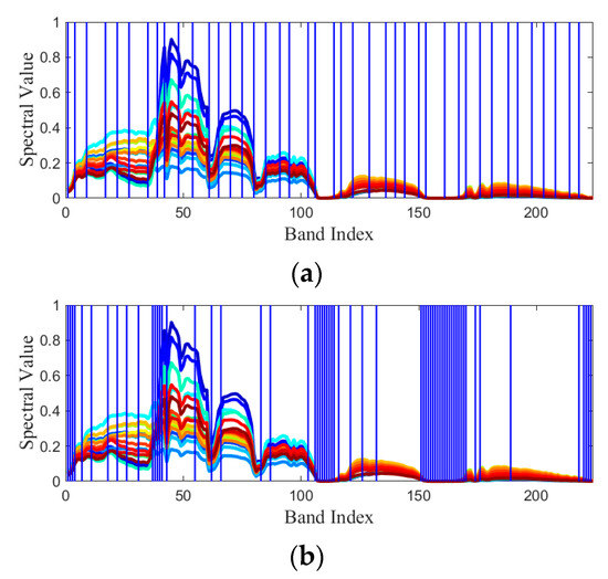 It is known that the adjacent bands in an HSI cube are highly similar because of the nature of continuous spectrum. When performing BS, according to the characteristics of the algorithm, similar or adjacent bands are inevitably selected, which may produce poor BS results. Therefore, it is necessary to take some strategies to avoid selecting redundant bands.