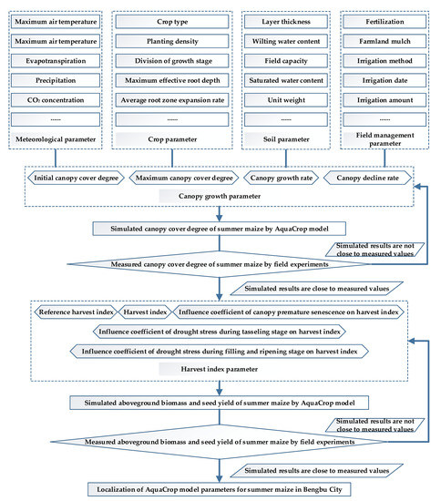 Process of AquaCrop model parameter calibration and verification.