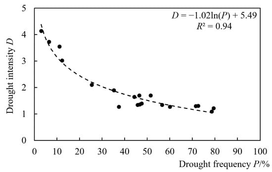- The P-III distribution curve method well fitted the univariate probability distributions of drought duration and drought intensity. Furthermore, the semilogarithmic function quantitatively described the drought hazard curve between drought duration–drought intensity joint drought frequency and drought intensity. Among 19 drought events, there were 15 events whose drought frequency was 0.2–0.8. Moreover, the drought intensity was basically below 2.0; the events whose intensity was larger than 3.0 were less. Therefore, droughts occurred frequently during the growth period of summer maize in Bengbu, though most of them were mild droughts with low intensity.
