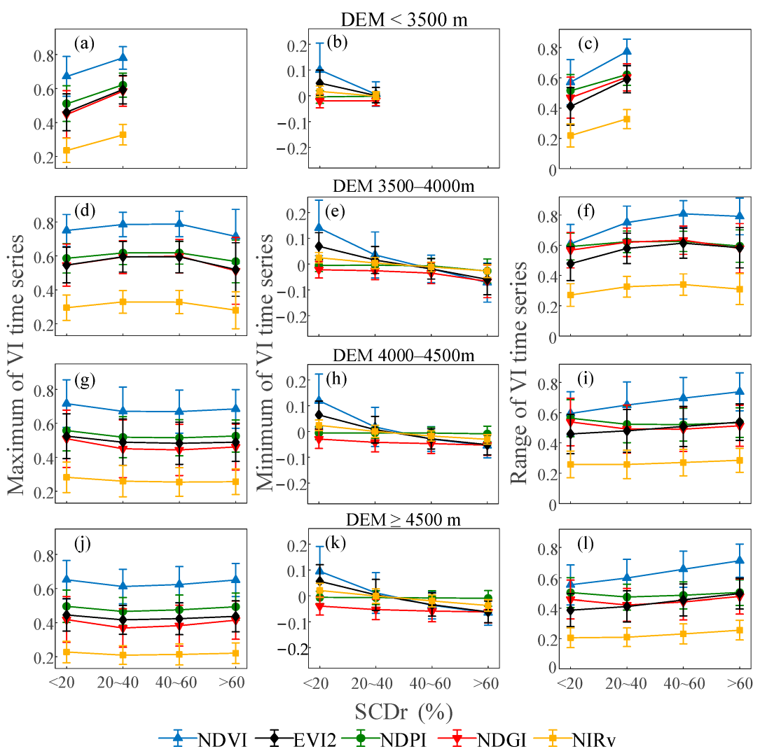 - Yang, W.; Kobayashi, H.; Wang, C.; Shen, M.; Chen, J.; Matsushita, B.; Tang, Y.; Kim, Y.; Bret-Harte, M.S.; Zona, D. A semi-analytical snow-free vegetation index for improving estimation of plant phenology in tundra and grassland ecosystems. Remote Sens. Environ. 2019, 228, 31–44. [Google Scholar] [CrossRef]