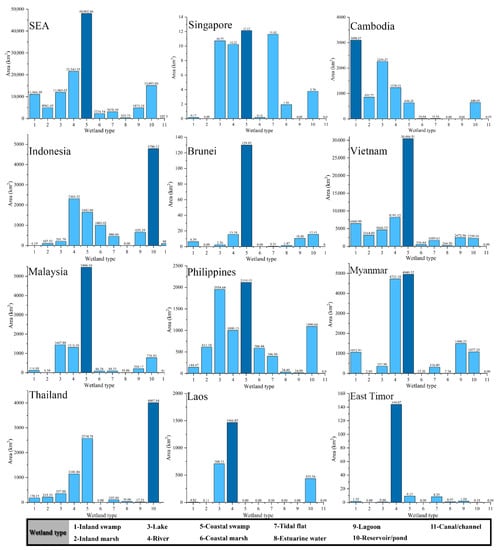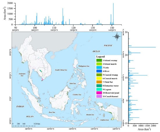 | MODIS Land Cover (MLC) | 2020 | 500 m | Wetland total areas in Southeast Asia | 88,145.91 | 123,268.61 |