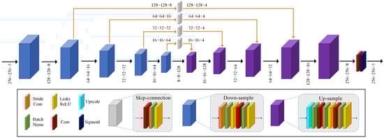 J-Net and T-Net: Inspired by [,], we take an encoder–decoder architecture with skip-connections for J-Net. As shown in Figure 3, in the encoding stage, there are five down-sampling modules to extract the image’s features in pyramid scales. We use stride convolution as the down-sampling operation. Five up-sampling modules with bilinear upscale are implemented in the decoding stage to recover the image. To reduce the information loss, skip connections using concatenate operation are employed between the corresponding layers of different levels from encoder and decoder. We use convolution with filters to reduce the dimension of feature maps to four for concatenation.