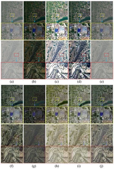 3.2. Evaluation of RS Images with Uniform Haze
