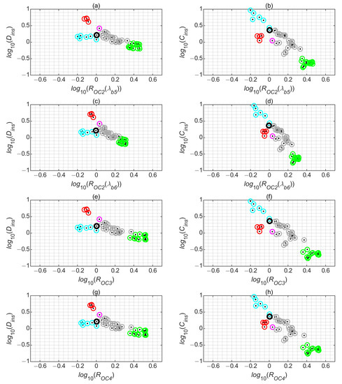 where the proportionality factors were determined by the comparison of Cflow and Dflow with and , respectively, and R2 is the coefficient of determination. The intercept value was not calculated since the R2 value remained significant. In further analysis, the Cins and Dins values were used.