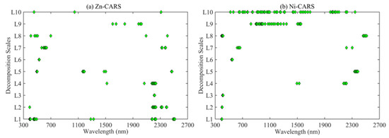 The position of feature bands for Zn and Ni based on the CARS algorithm.