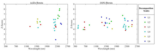 The position of feature bands for Zn and Ni based on the Boruta algorithm.