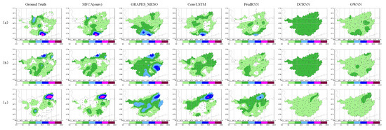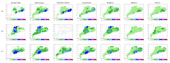 - Wu, Y.; Yang, X.; Tang, Y.; Zhang, C.; Zhang, G.; Zhang, W. Inductive Spatiotemporal Graph Convolutional Networks for Short-Term Quantitative Precipitation Forecasting. IEEE Trans. Geosci. Remote. Sens. 2022, 60, 1–18. [Google Scholar] [CrossRef]