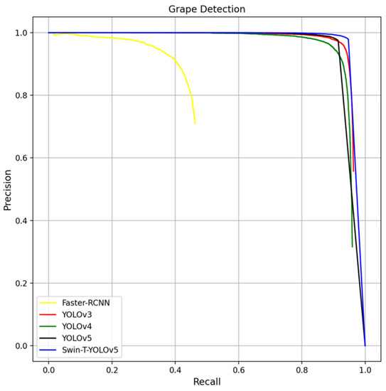 Figure 6). Similarly, the performance of Swin-T-YOLOv5 was poor on the Merlot variety when the berries were immature. For Chardonnay, Swin-T-YOLOv5 achieved better results under either condition (