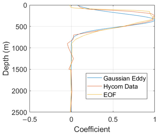According to the above analysis, we conclude that the first-order RBF + EOF can be regarded as an approximation of the Gaussian eddy model. The first-order RBF is completely consistent with the horizontal Gaussian eddy model. The first-order EOF represents the vertical characteristics of mesoscale eddy learned from the data while the Gaussian eddy model is structured as a Gaussian shape with two parameters.