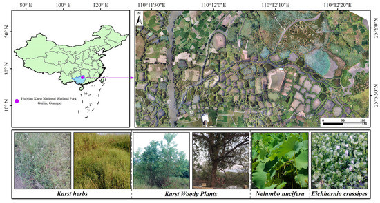 The global distribution of soluble rocks accounts for approximately 20% of the dry and ice-free land area [1], while the area of karst landform in China accounts for approximately 81% of the national territorial area [2], and the karst areas of south China is one of the largest continuous karst regions in the world [3]. Karst wetlands are a special and important component of karst ecosystems, which is a natural complex, consisting of lakes, rivers, freshwater marshes, etc. Karst wetlands are not only one of the most productive and diverse ecosystems in karst areas but also a stable “carbon reservoir” and source of “carbon absorption” [4]. Health wetland ecosystems are the key foundations for global and regional ecological security and sustainable development. However, karst wetlands are highly dependent on the hydrological cycle, which involves the interaction between groundwater and surface water. However, surface water is highly susceptible to human activities, resulting in a very fragile karst wetland system [5]. Unfortunately, the intensification of human activities (such as wetland reclamation, sewage discharge, tourism development, infrastructure development, species invasion, etc.) in recent decades has brought about enormous pressures on the fragile karst wetland system [6] and resulted in its continuous degradation (shrinkage of wetland area, biodiversity decrease, eutrophication of water bodies, etc.). Therefore, this makes it more important than ever to constantly monitor the status of karst wetlands and develop and strengthen wetlands conservation. As an important component of the karst wetland ecosystem, vegetation is a sensitive indicator of wetland environmental changes [7]. Accurate vegetation classifications and repeat monitoring are able to provide strong support for the conservation and rational development of karst wetlands.