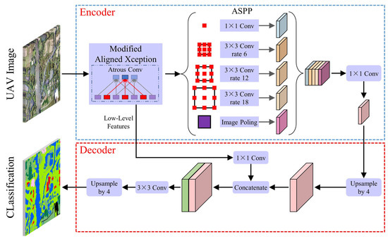 - Chen, L.-C.; Zhu, Y.; Papandreou, G.; Schroff, F.; Adam, H. Encoder-Decoder with Atrous Separable Convolution for Semantic Image Segmentation. In Computer Vision—ECCV 2018; Springer: Cham, Switzerland, 2018; pp. 833–851. [Google Scholar] [CrossRef]