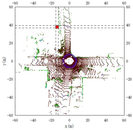 where p denotes a point among the point clouds within the current subregion ; and represent the x- and y-coordinate information about point , respectively; and are offsets which ensure the row index and column index of point cloud block fall within the range of positive integers. In this paper, we set , , , and . At this point, the size of the scanning region in real scenes corresponding to each subregion is 0.75 m × 0.75 m.