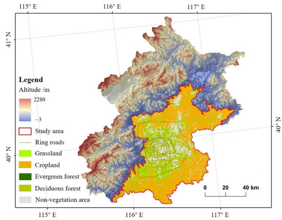 Study area. Note the downtown area of Beijing is mainly located within the Outer Ring Road.