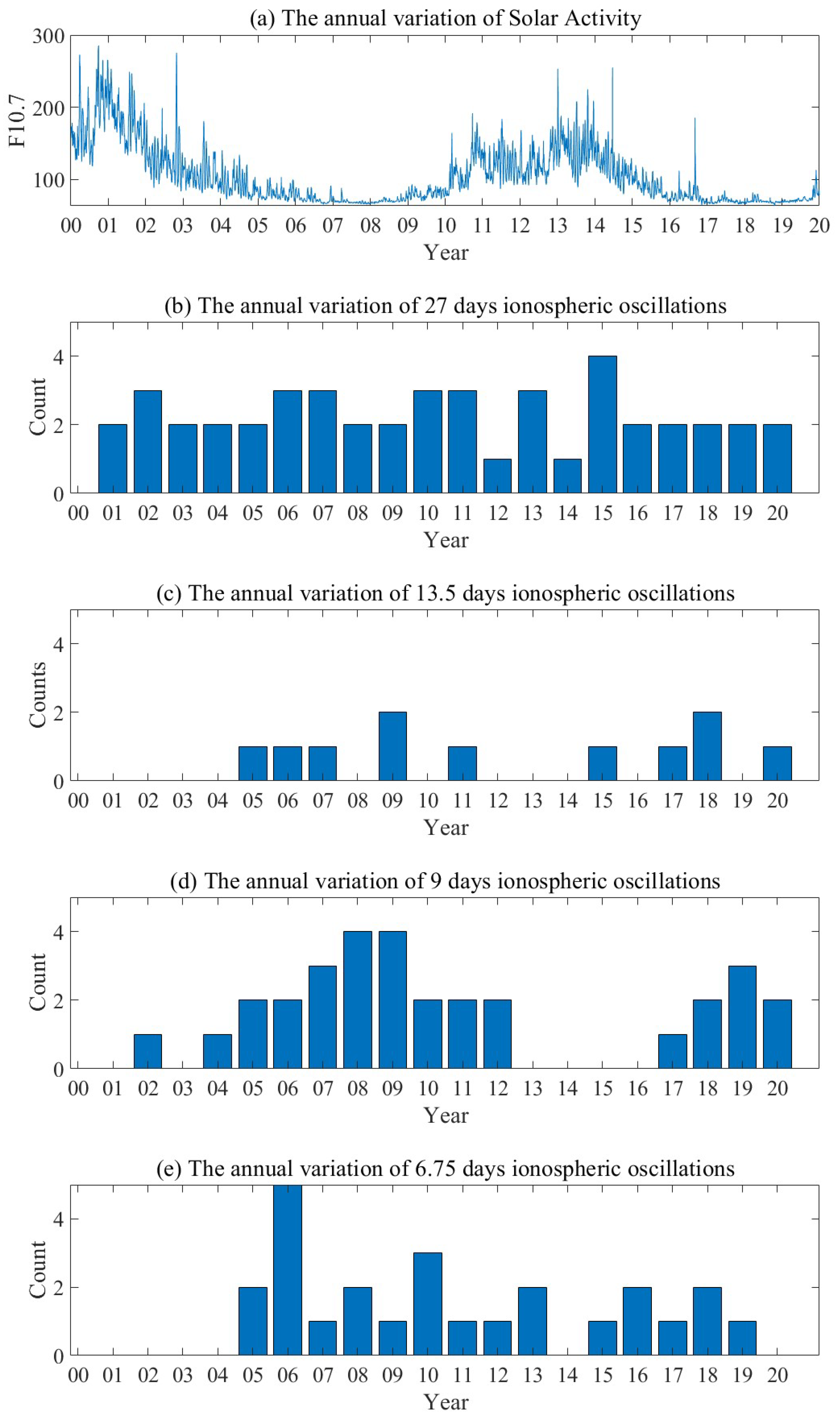 3.2. The Relationship between Solar or Geomagnetic Activity and Ionospheric Oscillation