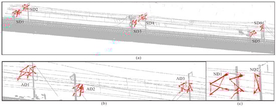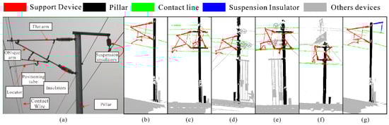 - To assess the extraction effect and robustness of the proposed algorithm, six types of support devices and three types of support device distribution scenes are tested. Furthermore, two groups of railway unit scenes are tested to detect the performance of the algorithm in the actual application process.