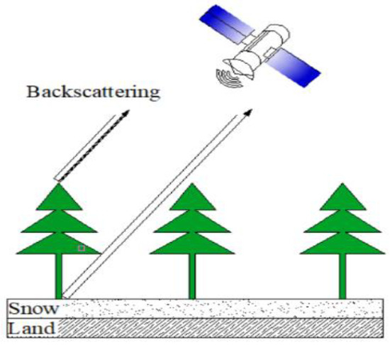 Figure 5 shows the microwave scattering process for snow cover in forest area. The existence of the forest increases the backscattering of forest, while also attenuating the backscattering process of snow and reducing the sensitivity of microwave to snow scattering.