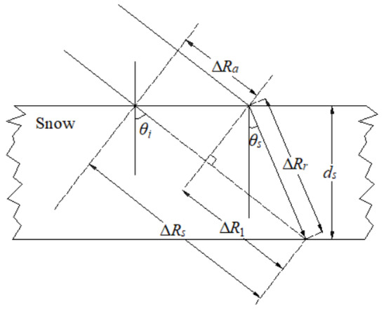 When there is snow cover, the microwave penetrates the snow to reach the surface by (∆Ra + ∆Rr), and when there is no snow cover, the distance is ∆Rs, and the difference between the two distances is: