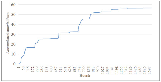 Chart of hourly accumulated snowfall at Jiagedaqi meteorological station from October to December 2020. Source: (https://www.xihe-energy.com/, accessed on 9 March 2022).