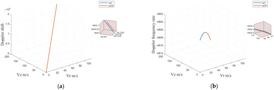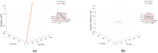 By analyzing the Doppler performance of 3D moving targets, the relationship between 3D velocity and acceleration can be established. The acquisition is also significant for predicting target position, 3D focusing and matching, and laying the foundation for distributed LEO SAR 3D imaging of moving targets. For three-dimensional velocity, where is the Doppler centroid frequency and is the Doppler frequency rate, we write