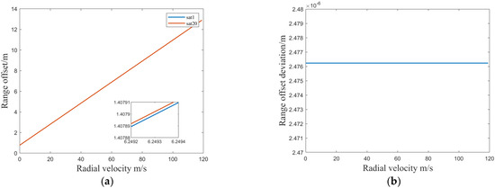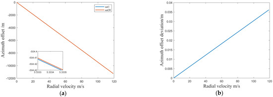 Suppose that the RVP phase of satellite 1 is , and the RVP phase of satellite k is . If the baseline direction is perpendicular to the line of sight, and . Hence, the difference between the two Doppler centers is mainly due to the slight difference in the direction of sight.