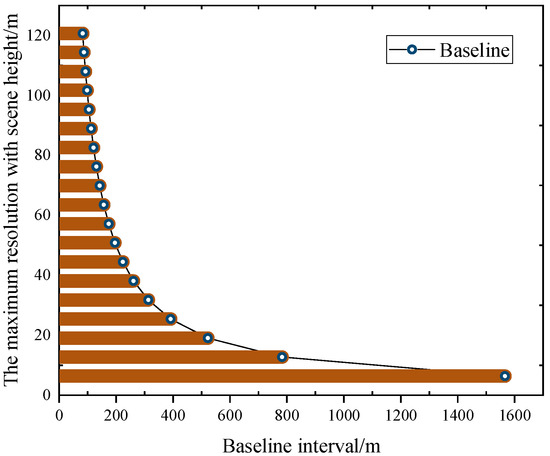 We set the baseline interval and obtained the maximum allowable height of the target scene. For L = 1566 m, we set the height resolution to 6.35 m for 20 satellites.