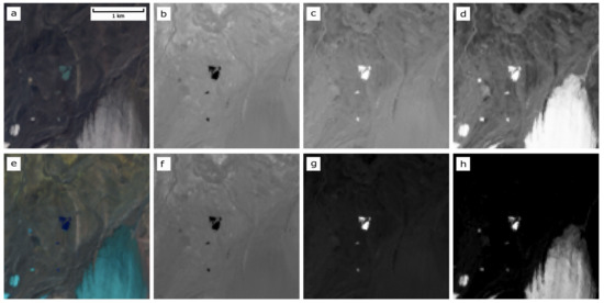 - McFeeters, S.K. The use of the Normalized Difference Water Index (NDWI) in the delineation of open water features. Int. J. Remote Sens. 1996, 17, 1425–1432. [Google Scholar] [CrossRef]