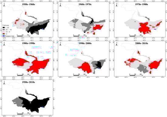 Changes in the MSFD of SFG over different periods in Heilongjiang province. In the figure, 1950s–1960s refers to the differences in the average MSFD between the 1950s and the 1960s, and the meanings of other labels follow in the same way.