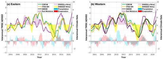 - Ni, S.; Chen, J.; Wilson, C.R.; Li, J.; Hu, X.; Fu, R. Global Terrestrial Water Storage Changes and Connections to ENSO Events. Surv. Geophys 2018, 39, 1–22. [Google Scholar] [CrossRef]