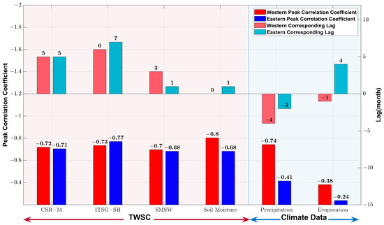 4.3.1. Cross-Correlation Analysis between Interannual TWSC and ENSO
