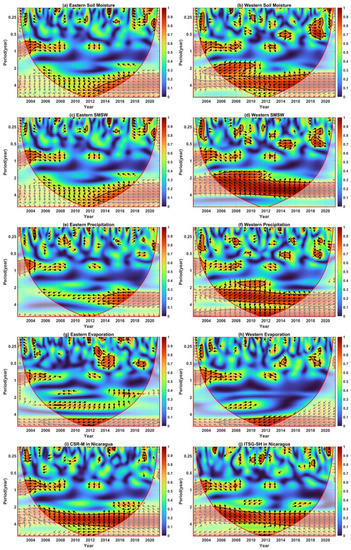4.3.2. Cross-Wavelet Analysis between TWSC and ENSO