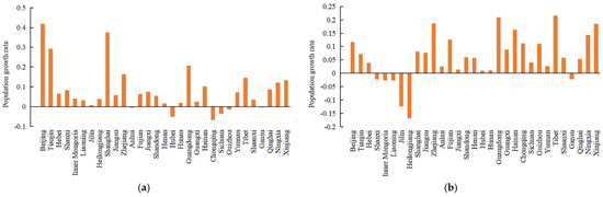 The population growth rates of each province for (a) 2000−2010 and (b) 2010−2020.