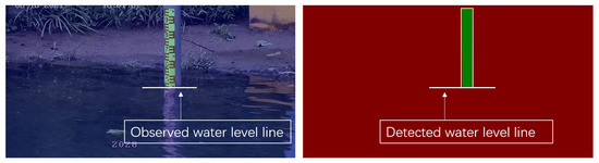 The height of the center coordinate of the detected minimum number x is , and the height of the detected level line is ; then, the actual water level value can be calculated by Equation (3).