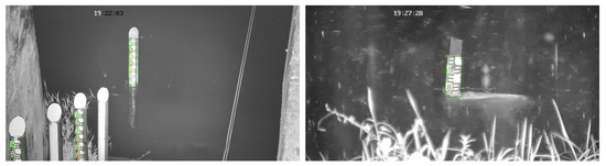 At the same time, we also tested seven difficult scenes in water level value recognition of water gauges: reflection, wind and waves, backlight, water transparency, night fill light, dirty, and sun shadow. The test results are shown in Figure 7, Figure 8, Figure 9 and Figure 10.
