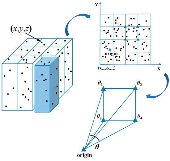In TLS data, a point is commonly represented by rectangular coordinates. To calculate the angle interval between beams of different points, we transform rectangular coordinates to polar coordinates (see Figure 3):