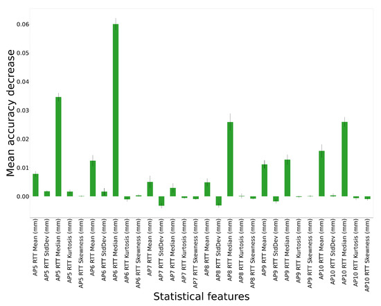 Therefore, the weighted average decrease in the impurity of each related node t would represent the importance of the corresponding feature [85]. The performance of MDI was investigated in [86]. It was observed that by leveraging features selected by MDI, an error rate as low as 4% was achieved.