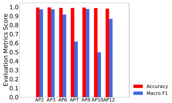 With the above importance filter, the feature sets (where m indicates different selection models) were chosen by the feature selection models. However, the generated feature sets are not guaranteed with high identification accuracy and therefore, are not equally informative to the result. Thus, in this step, the selected statistical features , are evaluated and assigned with initial weights. The LOS identification performance of all feature sets are investigated by leveraging Random Forest Classifier (RFC) and cross-validation. The macro F1 score (the average F1 score of all classes) and the accuracy are used as the evaluation metrics, as follows: