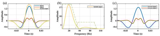 Schematic diagram of multi-scale seismic data extraction. (a) Synthesized seismic signal. (b) The amplitude spectrum of the synthesized signal, where the dashed green line indicates the crossover window. (c) The extracted multi-scale seismic data.