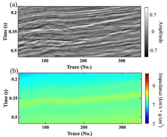 Seismic impedance, the product of density and seismic velocity, directly reflects the nature of subsurface rocks and can be used to indicate oil and gas, calculate reserves, and guide well placement, etc. Compared with the original seismic data, the impedance profile obtained by seismic impedance inversion methods eliminates the tuning effect and improves the vertical resolution of seismic data, which is an important parameter for reservoir prediction in the field of oil and gas exploration [1,2]. Accurate impedance parameters are a prerequisite for subsequent reservoir interpretation. The interpretation of complex and unconventional reservoirs places greater demands on impedance accuracy and resolution. However, from a mathematical point of view, seismic impedance inversion is an inverse problem and is ill-posed. Due to the limitations of incompleteness, noise, and wavelet band limitations of the observed data, multiple geological models can usually be obtained to match the observed data. Moreover, if the given data and the established geophysical-mathematical model do not perfectly match the actual geological model during the inversion process, the solution in the specific geological sense will not exist or the solution will be unstable. Because the Earth medium is complex and variable [3], it is often difficult to accurately establish the relationship between seismic data and subsurface model parameters with a limited number of geophysical parameters and associated mathematical physical models. Although the theory and technology of these seismic inversion methods have been continuously improved, they are not as effective as desired in practical reservoir prediction and lithology characterization [4,5,6,7,8,9,10,11].