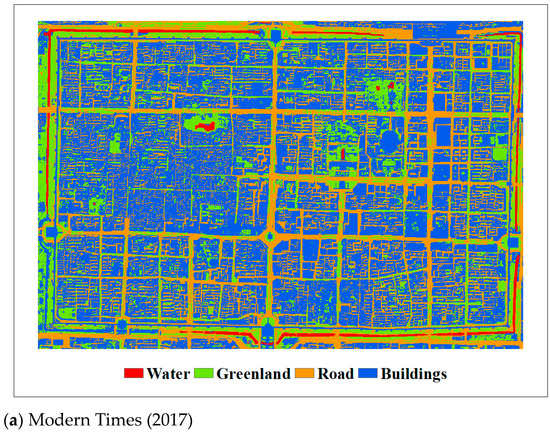 In this paper, the area of Xi’an within the Ming-era city wall was selected as the study area to study land-use change. The total area of the study area is 13.69 km2, as shown in Figure 1.